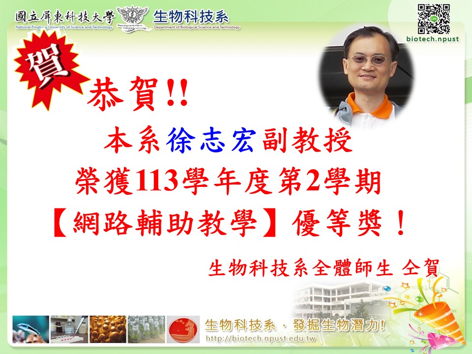 5. 恭賀!!本系徐志宏副教授榮獲113學年度第2學期【網路輔助教學】優等獎!